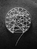 Nome – Complexidade Minotaurica Dimensões – 8cm de diâmetro. Materiais – Acrílico transparente e fio branco de algodão. Técnica – Construída. Ano - 2002 Edição - 1 ex.