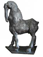 Nome –Cavalogalo. Dimensões – Altura, 101cmxlargura, 74cmxprofundidade, 40cm. Materiais – Gesso c/patine. Técnica – Modelação + Passagem a gesso. Ano – 1990. Edição – 1ex.