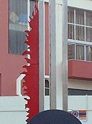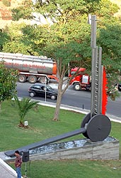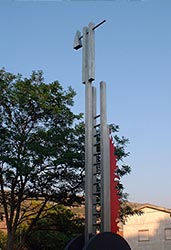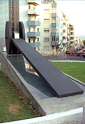 autor: João Duarte localização: Quartel B. V. Sesimbra materiais: Aço Inox, Bronze tamanho: comp. 8 metros; alt. 9 metros ano: 2003 Implantação: Metalúrgica Coelhos