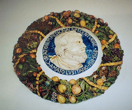 Serie de 6 medalhões em cerâmica 100cms, representando médicos notáveis de Portugal.