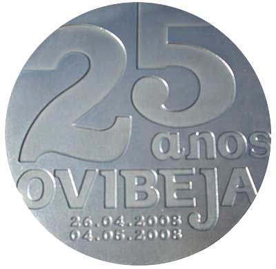 nome: Medalha comemorativa 25 anos - Feira agricola,OVIBEJA tamanho: 90mm materiais: bronze prateado técnica: cunhada ano: 2008 edição: 50 peças WWW.ESCULTOR.COM.PT/MANUELASOARES